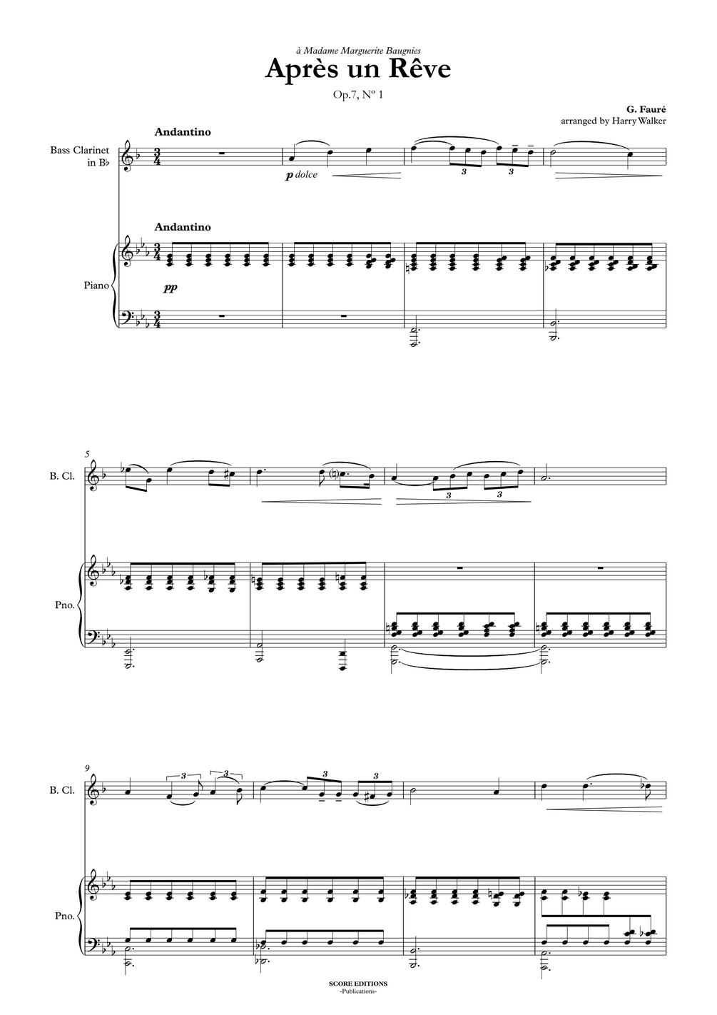 Après un Rêve (Fauré) for Bass Clarinet & Piano