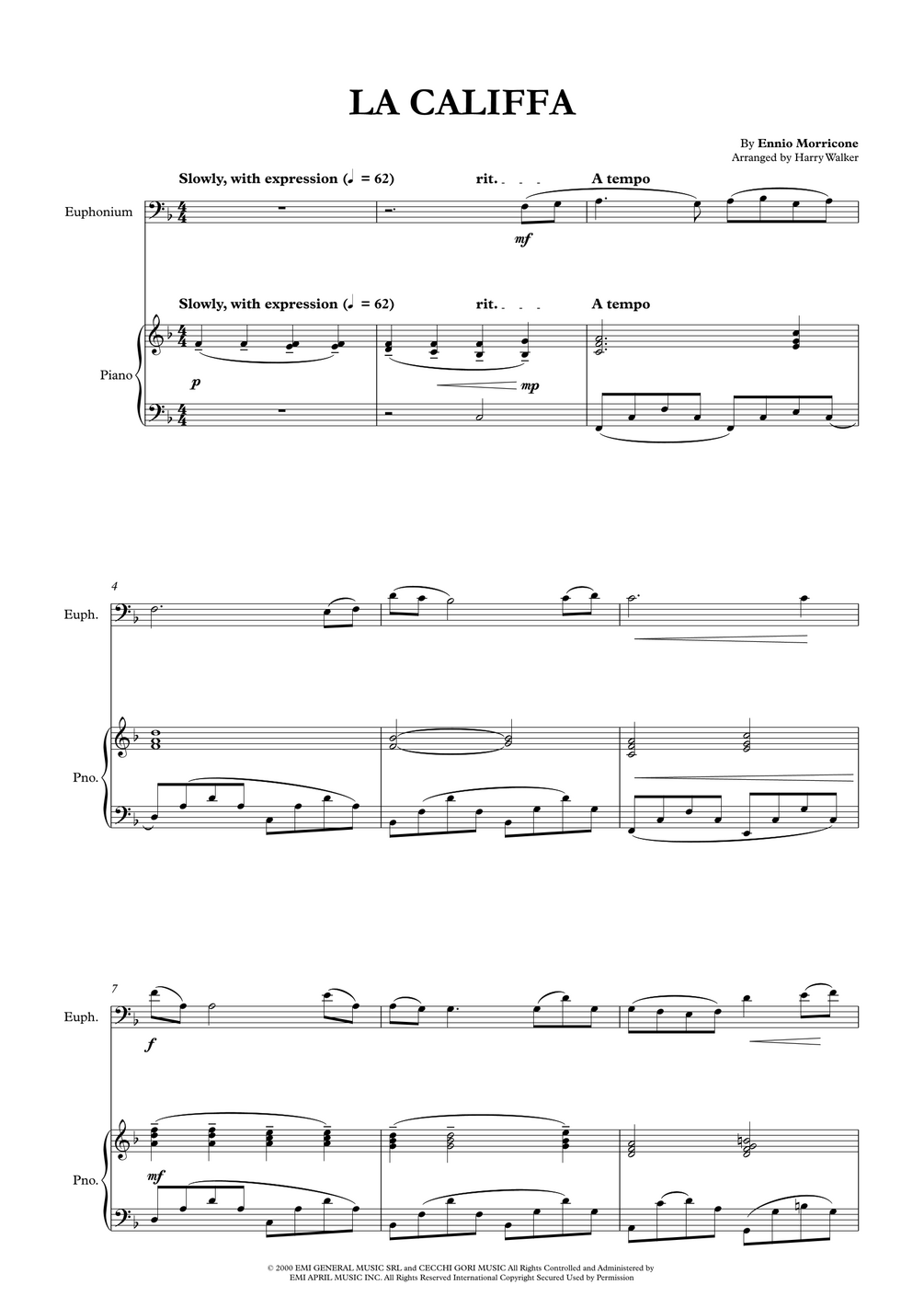La Califfa – Ennio Morricone for Euphonium BC and Piano