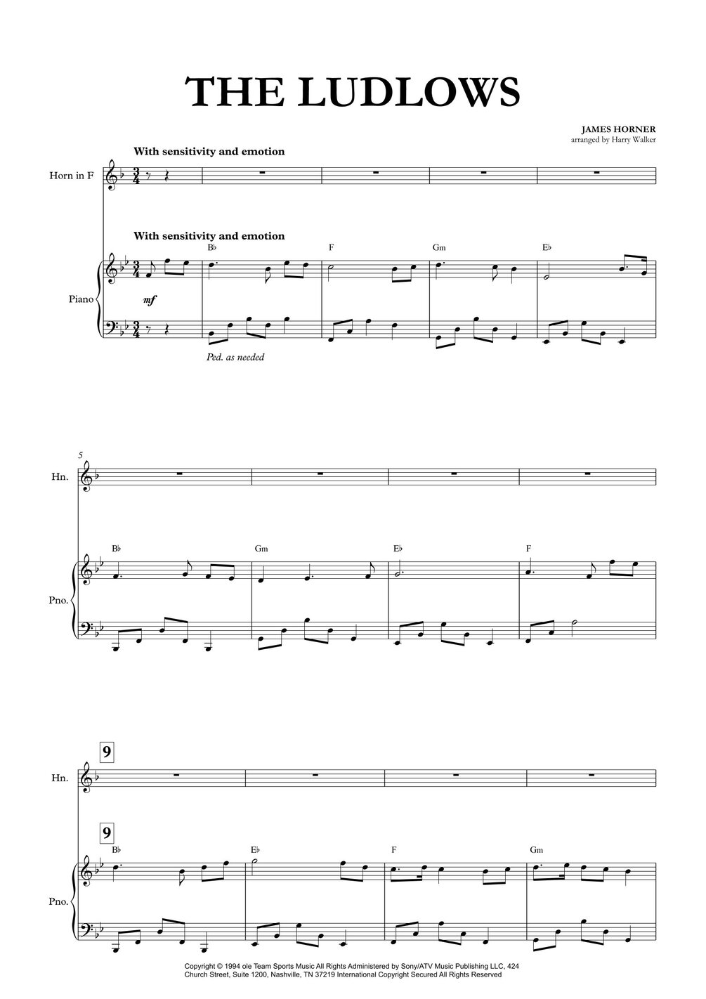The Ludlows – James Horner | Sheet Music for Horn in F & Piano