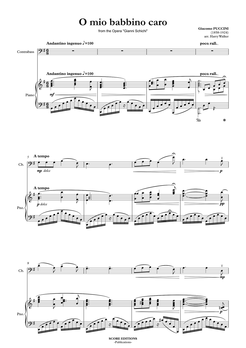 O mio babbino caro (Puccini) for Double Bass and Piano