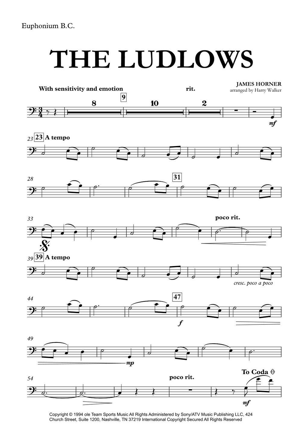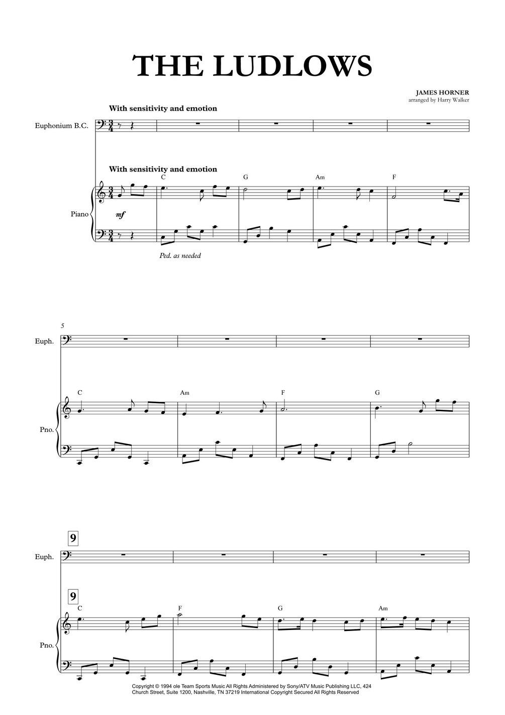 The Ludlows – James Horner | Sheet Music for Euphonium B.C. & Piano